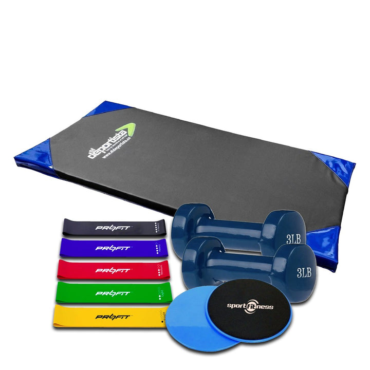 Consigue implementos básicos: colchoneta antideslizante, banda elástica y un aro. Encuéntralos en El Deportista.